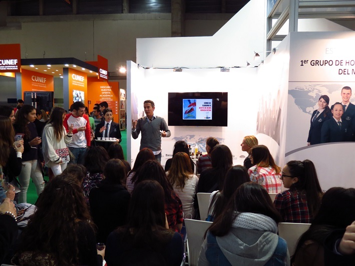 La Escuela Internacional de Hotelería y Turismo Vatel España ha sido una de las sensaciones de la Semana de la Educación celebrada en IFEMA, como demuestran las más de 6.000 personas que han visitado el stand que la entidad ha tenido en AULA 2015, la cita de mayor renombre de todas las que abarcan este periodo. Un dato que se ha obtenido a través del recuento de las personas que han pedido información sobre la oferta educativa de la Escuela durante los cinco días de Salón, así como con las que se han acercado atraídas por las sorprendentes catas y actividades del propio stand, entre las que han destacado la de microvegetales y flores, aceite de oliva virgen extra, zumo de uva, pan o quesos franceses.