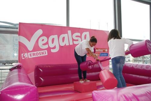 Todos los asistentes que se acerquen al stand de Vegalsa-Eroski entrarán, solo por participar en su juego de salto de longitud, en el sorteo de cinco lotes de productos saludables Eroski Sannia. Además, la compañía entregará merchandising y folletos informativos de autoexploración mamaria para contribuir a su detección precoz.