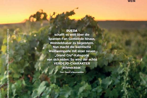 El autor del reportaje es el periodista germano David Schwarzwälder, especialista en vinos españoles y autor de la primera guía de vinos de nuestro país en Alemania. Schwarzwälder destaca la proyección internacional de la D.O. Rueda, que “consigue entusiasmar a los amantes del vino más allá del club de fans de España”, recoge en su artículo. Y añade que “pocas variedades de uva blanca españolas han alcanzado un nivel de popularidad internacional similar al de la verdejo”, que está “indisolublemente unida a Rueda”, asegura.