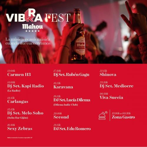 “Vibra Mahou Fest” traerá de nuevo a Asturias el próximo 22 de abril una jornada de más de doce horas de música ininterrumpida que combinará las actuaciones de algunas de las bandas más relevantes de la escena pop-rock actual con las sesiones de conocidos DJs locales.