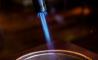 Kubak crujiente acompañado de pollo y mariscos con huevo de pita pinta, terminado en sala con soplete