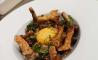 Setas de temporada, huevo a baja temperatura, patatas confitadas y papada