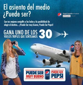 ¡Con Pepsi puede ser! La marca invita a sus fans a reservar el asiento del medio de su avión virtual en Facebook, sentar a su lado a sus mejores amig@s y entrar en el sorteo de 30 billetes triples