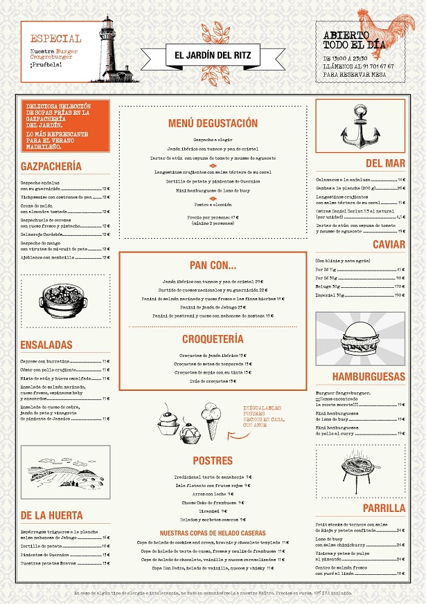 Desde el 1 de mayo, el Hotel Ritz by Belmond abre su Jardín con un horario ininterrumpido de 13h00 a 2h00. Entre las propuestas del chef Jorge González se encuentran: tapas, ocho tipos de sopas frías, platos de Grill y la trilogía de hamburguesas: pollo, cangrejo y ternera.