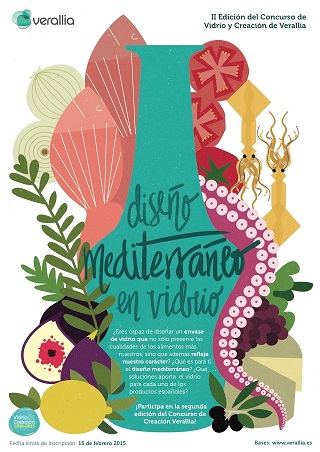 Verallia, empresa líder del sector de los envases de vidrio, lanza por segundo año consecutivo la edición española de su Concurso de Vidrio y Creación, coincidiendo con la sexta edición -2014-2015- de este certamen internacional. En esta ocasión su lema es “Diseño mediterráneo”, con el que plantea a los estudiantes el reto de convertir en un envase de vidrio su particular visión de esta estética. Siempre defendiendo los valores de sostenibilidad, innovación y practicidad, entre otros.
