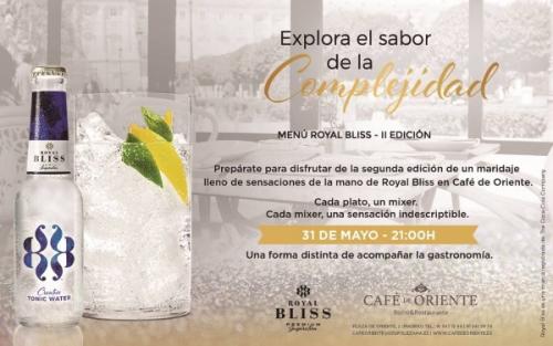 El Café de Oriente repite una de las experiencias que más ha gustado a sus clientes: El Menú Royal Bliss, II edición. Un menú elaborado con la colaboración de la gama de mixers de Coca Cola, Royal Bliss.
