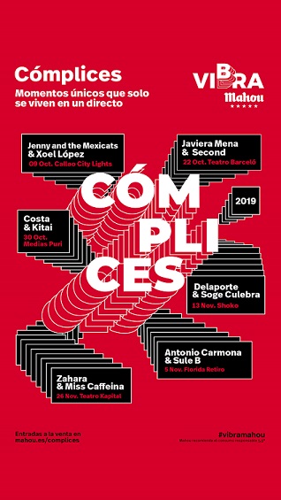 La complicidad entre artistas, la cercanía con el público y el sabor de la música en directo son, un año más, los grandes protagonistas de Cómplices de Vibra Mahou. La nueva edición de este ciclo contará, durante los meses de octubre y noviembre, con doce artistas de distintos estilos musicales que se unirán en las principales salas de Madrid para ofrecer colaboraciones únicas a dúo.