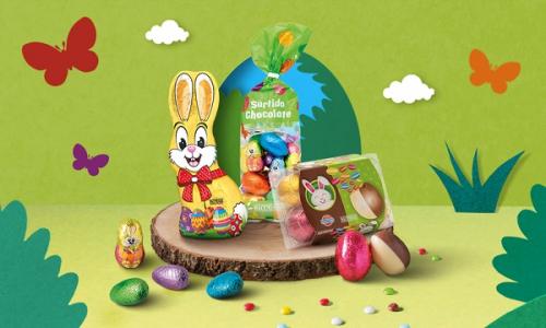 Entre el surtido destaca el Conejo de chocolate con leche, los Huevos de chocolate blanco y chocolate con leche con disquitos de colores en su interior, así como el Surtido de Chocolate.