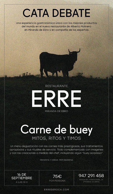 Con esta apertura llegaron también unas didácticas Catas-Debate perfectas para vivir esa experiencia y en las que se analiza la realidad, los tópicos, mitos y ritos de algunos de los mejores productos del panorama nacional. La primera de ellas se centró en el mar y la próxima girará en torno a la Carne de buey y se disfrutará de un menú degustación ‘aliñado’ de consejos y comentarios de la mano de expertos. La cita estará repleta de carnes, incluyendo algún ‘buey sorpresa’ junto a lo mejor de la carta de ERRE y tendrá lugar el próximo viernes 16 de septiembre a las 14:30 horas.