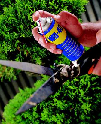 Las tijeras de podar, tijeras cortasetos, cuchillas, rastrillos, palas, paletas, picos, azadas, escarificadores, cortacésped, sierras mecánicas y eléctricas, motocultores, ahoyadores, desbrozadoras, hidrolimpiadoras, motoazadas, compostadoras, biotrituradoras, aspiradoras, cortadoras de hojas, cortabordes, etc., en definitiva todo tipo de herramientas pequeñas y grandes, mecánicas y eléctricas pueden ser mantenidas con WD-40 con especiales propiedades de engrase, lubricación, protección y limpieza.