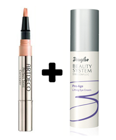 | Corrector + Contorno No es raro despertarse por la mañana con ojeras. Cuando se vaya a usar el corrector de imperfecciones en la zona del contorno de ojos, lo mejor será practicar el whisking con un concealer y una crema anti-edad, específicamente creada para esta zona. Como explica la formadora de Douglas: “Con ello, conseguiremos no sólo eliminar cualquier defecto, sino además prevenir el envejecimiento y ayudar a la piel de esta región”. ARTDECO Perfect Teint Concealer, exclusivo en Douglas: 16,95€ DBS Complex Lifting Eye Cream: 29,95€ |