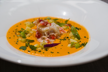 Por esa razón, el establecimiento suma a sus platos una línea healthy, con cantidad de verduras de temporada que sustituyen otros ingredientes con una carga calórica más alta, o con mayor porcentaje de grasa. La sopa de tomate, gambas de Palamós y helado de apio-lima, o el rodaballo con espárragos blancos, salsa cítrica de yuzu y albahaca son