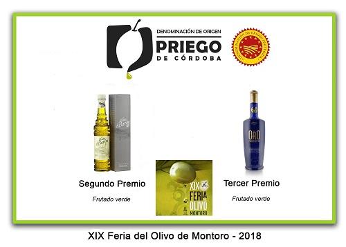 La Denominación de Origen Protegida “Priego de Córdoba” resulta premiada en la XIX edición de la Feria del Olivo de Montoro. En concreto, dos firmas con sello prieguense consiguen el segundo y tercer premio frutado verde. Las firmas son: