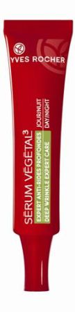 La línea de productos Sérum Végétal 3 de Yves Rocher, rellena las arrugas y activa la luminosidad de la piel de forma rápida y sencilla. Tres nuevos productos –Experto Antiarrugas Profundas, Tratamiento Rellenador Arrugas Profundas Ojos y Crema Resplandeciente Día SPF 20- complementan esta gama para lucir una piel más joven.
