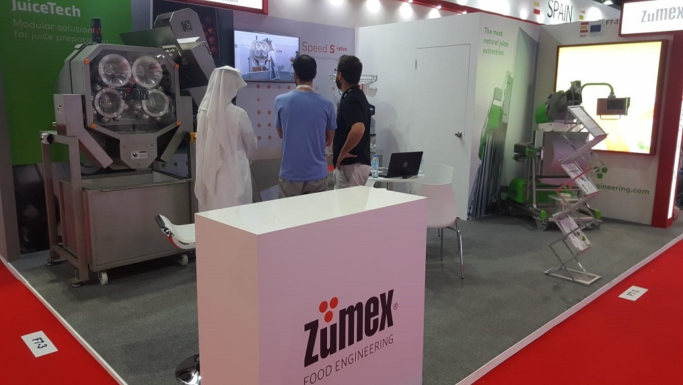 Así, ZUMEX® ha estado presente del 29 al 31 de octubre en el World Trade Center de Dubai con sus últimas novedades de su línea de negocio Food Engineering y sus soluciones de exprimido para retail.
