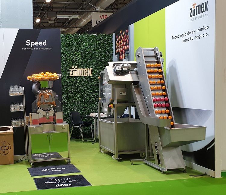 Además, la firma ha estado presente en Fruit Attraction, la gran cita hortofrutícola de Europa, celebrada en IFEMA (Madrid), del 22 al 24 de octubre, para exhibir sus soluciones para la industria del zumo y el resto de soluciones de exprimido para grandes superficies. En esta edición de Fruit Attraction, ZUMEX® ha hecho hincapié en la importancia del segmento del zumo recién exprimido en tienda como una oportunidad dinamizadora del área de frescos. Las premisas clave que vehiculan este crecimiento son la conveniencia, lo saludable y la experiencia self-service proporcionada por las soluciones de exprimido de la firma. En este sentido, los juice corners a medida de la Serie Speed permiten mejorar el punto de venta de frescos de grandes retailers o pequeños con carácter BIO.