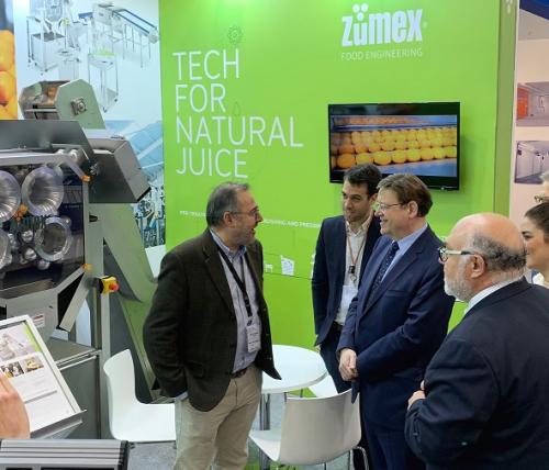 ZUMEX® Group, líder global en el desarrollo de sistemas de exprimido, ha recibido hoy la visita del President de la Generalitat Valenciana, Ximo Puig, en su stand de la feria FRUIT LOGISTICA, celebrada en Berlín. Un espacio donde 3.200 expositores y más de 78.000 visitantes profesionales han compartido su visión y potencial sobre el negocio en el mercado internacional de productos frescos.