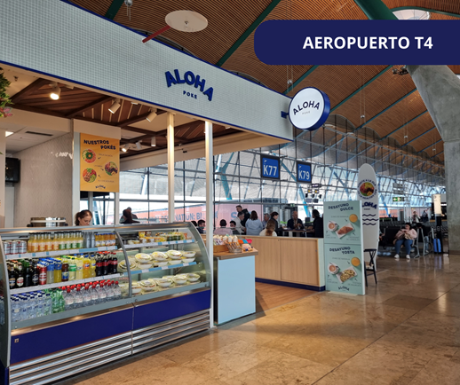 Aloha Poké suma dos nuevas localizaciones en Madrid situadas en el Aeropuerto de Madrid Barajas Adolfo Suárez e Ifema, dos puntos de gran afluencia y estratégicos para llegar a más gente con su filosofía Healthy Fast Food. Ambos locales están ya operativos y su llegada ha sido muy bien recibida tanto por los viajeros de la T4 como la de los visitantes del recinto ferial. De esta manera, la cadena finaliza el año alcanzando los 34 locales a nivel nacional y 13 en la Comunidad de Madrid. Por otro lado, la cadena pionera de poké y gracias a la adjudicación de Areas, tiene su propio espacio en Ifema, el recinto ferial más importante de España donde se realizan más de 100 encuentros profesionales al año, convirtiéndose en el primer y único restaurante de pokés dentro del recinto. Este local, que se encuentra en el pasillo principal muy próximo a la entrada del Pabellón 4, tiene una superficie de 109 metros cuadrados, terraza y capacidad para 100 comensales.