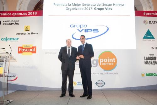La trayectoria y compromiso de Grupo Vips para el fomento de la alimentación saludable ha sido reconocida con el premio Qcom.es 2018 a la Mejor Empresa del Sector Horeca Organizado.