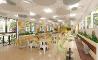 El comedor está decorado con colores y texturas juveniles, cuenta con paneles fotoacústicos para la reducción del ruido y con la iluminación adecuada para cada espacio, en función de la actividad para la que esté destinado.