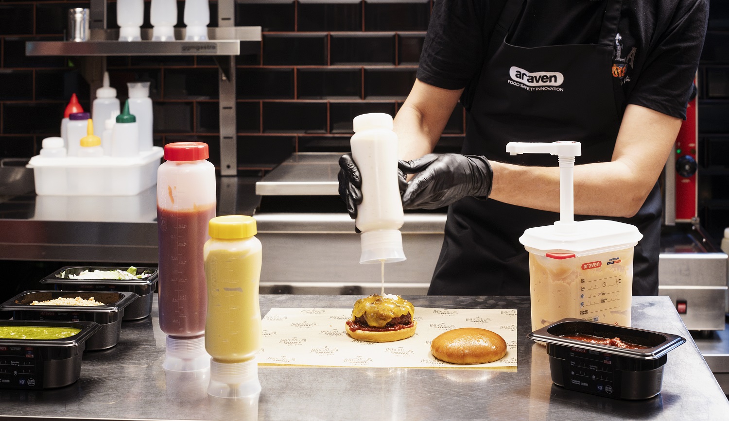 Araven vuelve a atender las necesidades específicas del fastfood con dos complementos para su dosificador FIFO Fast, especialmente concebido para dispensar de la forma más rápida y efectiva condimentos y salsas y garantizar la correcta rotación del producto. La eficiencia operativa y reducción de tiempos y costes que requiere este sector de la hostelería son todavía mayores con los nuevos tapones de cierre en seis colores y el repuesto de válvula + boquilla.