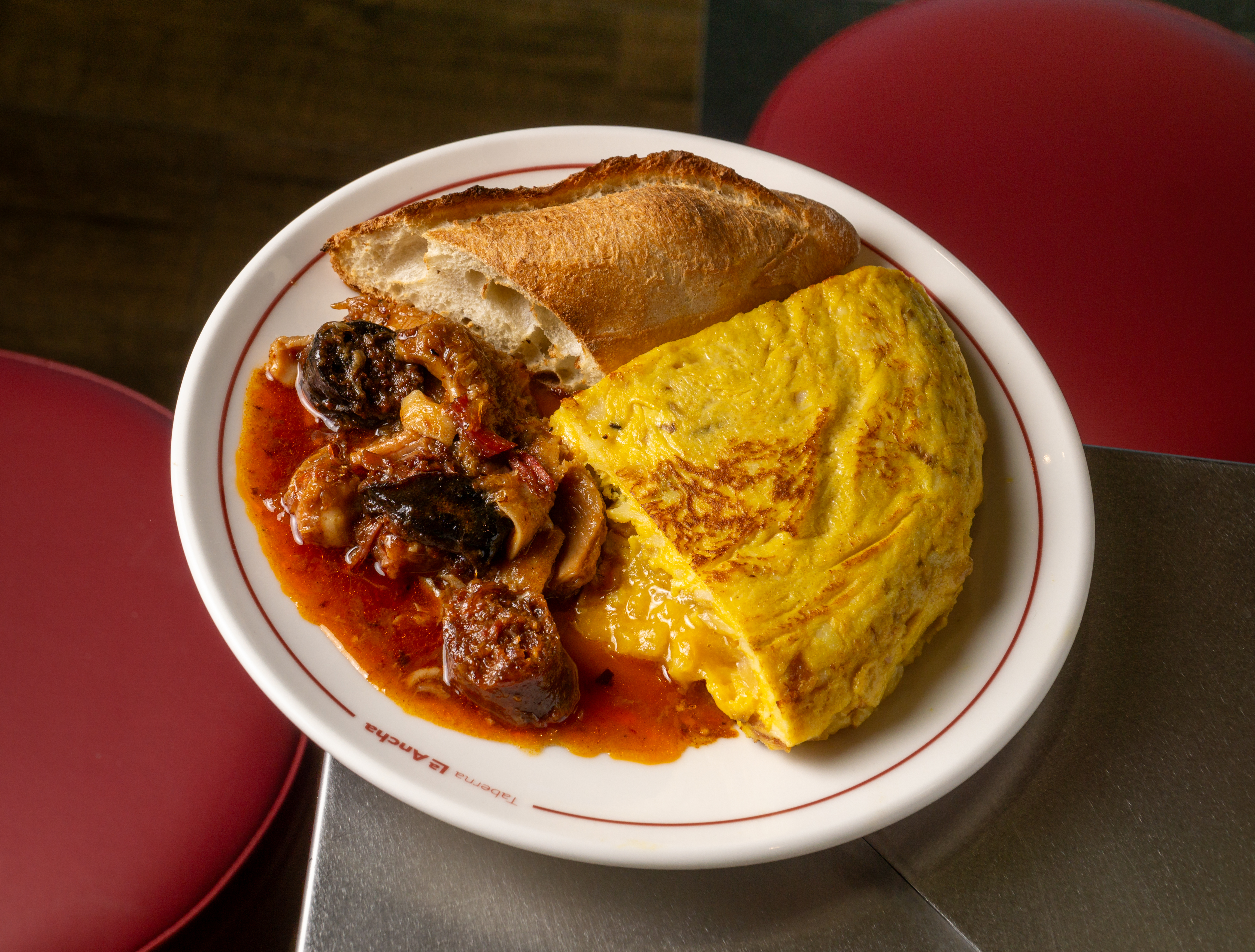La oferta gastronómica incluye una cuidada selección de productos icónicos de Familia La Ancha, entre los que destacan el Armando o la hamburguesa San Jacoba. A ello se suman los reconocidos pinchos de tortilla, acompañados de guarniciones como ensaladilla, callos o migas, y una carta de raciones que incluye platos como carrillera, alitas de pollo, albóndigas o los guisos del día.