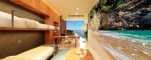 Las Concept Rooms que se han podido ver en la feria muestran las posibilidades de la automatización de una habitación de hotel que ofrece la tecnología de Loxone. Una de ellas es la Slow Family Traveller, propuesta por el estudio de interiorismo Patrick Genard y la cadena hotelera Guitart Hotels, y pensada para huéspedes que viajan en familia. Mensajes de bienvenida, iluminación automática que detecta si hay suficiente luz natural, sensores de temperatura para climatizar la estancia, luces que se encienden y apagan al pasar de una estancia a otra, control de la música, escenas y ambientes a elegir… todo automatizado y que el cliente puede ajustar a sus gustos o necesidades a través de los pulsadores de Loxone (Touch Pure, Touch Surface o Despertador Pulsador Nightlight) y el mando a distancia Remote Air. Además del confort, la sostenibilidad y eficiencia son los grandes protagonistas de esta propuesta: los detectores de presencia encienden y apagan luz y audio si la habitación está o no ocupada, y regulan la temperatura, evitando gastos de energía. Los contactos de puertas y ventanas para detectar cierres y aperturas permiten ahorrar en luz, el riego automático con sensor de humedad ahorra agua en al terraza, y en el baño lo hace el detector de fugas.