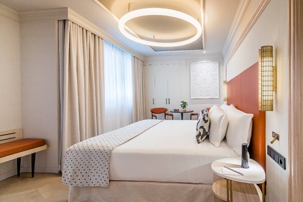 El estudio de interiorismo ILMIODESIGN ha sido el encargado del diseño interior del hotel que se ha inspirado en la estética de La Alhambra; una guía constante a la hora de trasladar las principales características de este icónico monumento granadino a cada uno de los rincones del hotel, buscando una conexión estética y visual que conecta al huésped con el destino a través de las emociones. Para ello, se ha utilizado una paleta cromática ad-hoc, que va desde los tonos beiges y piedra para los ambientes, a distintos tonos de verdes, amarillos y mostazas en detalles y elementos decorativos. Igualmente, el dorado es el gran protagonista del nuevo hotel, presente a través de distintos materiales y texturas.
