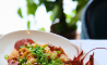 La carta, fiel a sus raíces en la cocina de la región costera de Wenzhou, rinde homenaje al mar y a la técnica, con platos que se cocinan con respeto y tiempo. Entre las estrellas del verano destaca el buey de mar salpimentado, una receta que juega con los contrastes del dulzor del marisco y el picante suave del jengibre. Le sigue el bogavante al vapor con ajo, servido entero, jugoso, con aromas que evocan los mercados pesqueros del sur de China.