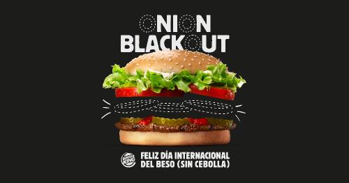 BURGER KING® vuelve a demostrar su carácter transgresor, en esta ocasión con la activación de una acción que despertará muchas pasiones… y ¡besos! Y es que con motivo del Día Internacional del Beso, que se celebra durante el próximo 13 de abril, la marca ha decidido quitar de sus menús la cebolla fresca, garantizando así que en un día tan especial lo único que se repitan sean los besos y no la cebolla.