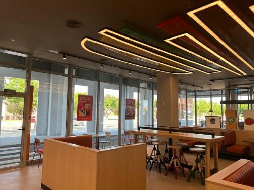El restaurante cuenta con imagen Royal de Burger King® España, una decoración en la que destaca el uso del roble blanco con matices suaves que permiten enmarcar el conocido lema de la cadena HOME OF THE WHOPPER®, creando así un entorno confortable y agradable. Además, la combinación de cemento y ladrillo negro, junto con las instalaciones vistas y la iluminación enmarcan un estilo idóneo para la rotulación y los muebles de diseño vibrante y colores vivos de la sala. De este modo, el restaurante se convierte en un espacio único con una variedad de asientos para que los clientes elijan dónde disfrutar de las icónicas hamburguesas a su manera, siguiendo el lema de los orígenes de la marca “Have It Your Way”.