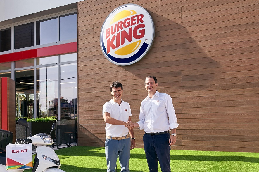 Burger King® España y Just Eat han firmado un acuerdo de colaboración para que los usuarios puedan pedir los productos de la cadena de restauración a través de la plataforma de comida a domicilio líder en España. El acuerdo supone un hito histórico para ambas compañías, Burger King® amplia así su servicio propio de entrega a domicilio, mientras que Just Eat aumenta el listado de restaurantes adheridos a su plataforma -que ya cuenta con 10.000 en nuestro país-.