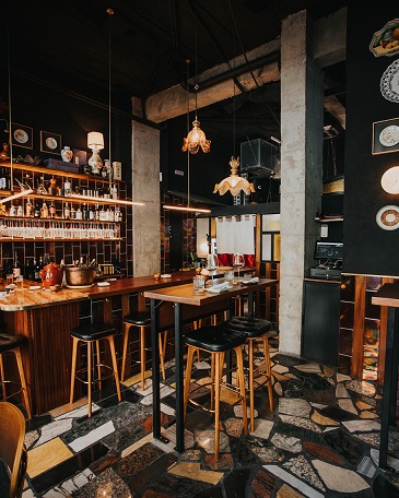 En Casa Sr. Ito impera un estilo muy relajado que atrae a quienes les fascina comer en barra, diseñada para 8 comensales, y en mesas altas, para otras 10 personas. La sala la capitanea Ibán González, que imprime ritmo y un estilo muy personal. De fondo suena flamenco y bandas sonoras de películas míticas como Kill Bill, y la mirada repara en detalles como los platos creados en exclusiva por el artista Carlos Villoslada, combinados con piezas de cerámica tradicional y lámparas de cristal. Porque el interiorismo de esta novísima taberna tampoco pasa desapercibido gracias al ingenio del director de arte, contador de historias y amigo del Grupo Sr. Ito, Natxo Castro.