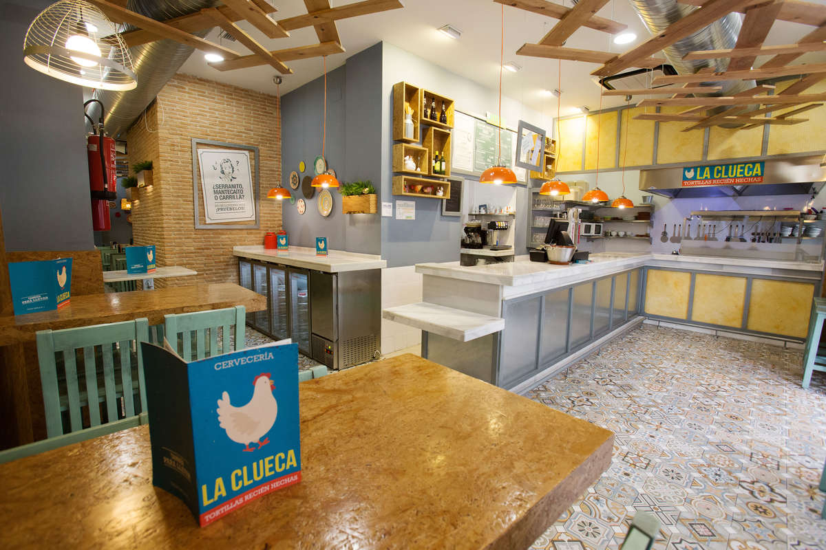 La tortilla española es la protagonista de La Clueca. Cuenta con más de veinte variedades que, gracias a su exclusivo sistema de elaboración, se sirven en tiempo récord, recién hechas, con toda su frescura y bajo comanda. Los comensales podrán elegir desde el formato más clásico hasta versiones nuevas como La Cordobesa (con salmorejo, jamón y huevo) o La Sibarita (con queso de cabra, cebolla caramelizada y nueces).