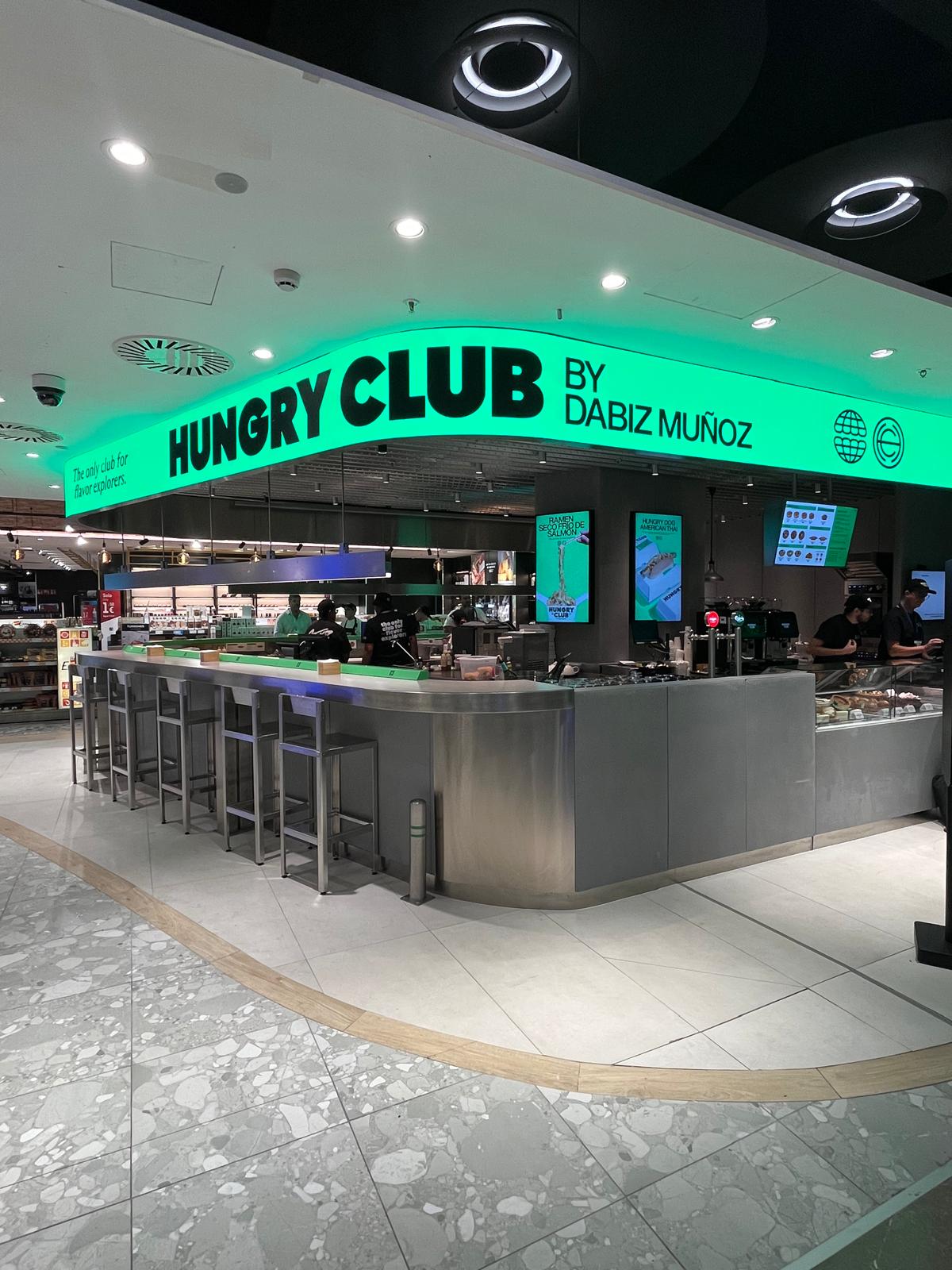 Hungry Club nace para romper las reglas de lo que se entiende por comer en un aeropuerto. Está dirigido a aquellos clientes inquietos, inconformistas y exploradores que buscan disfrutar de la buena comida en cualquier parte del mundo y, por tanto, también en un aeropuerto. Hungry Club es un club para disfrutones con comida llena de sabor y contrastes, sin fronteras y con una oferta muy dinámica que cambia constantemente y varía en función del momento del día (desayuno, brunch, cena, comida rápida para llevar, etc.). Está pensado para el ritmo de un aeropuerto, ya sea para sentarse en el bar, en la terminal o para llevarse la comida al propio avión.