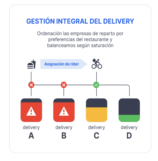 El restaurante solo tiene que decidir con qué empresas de reparto quiere colaborar para que el sistema gestione los pedidos automáticamente según los vayan recibiendo.