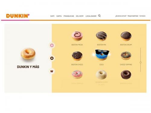 Con este nuevo diseño, Dunkin ofrece una mejor experiencia a todos los niveles, gracias a su formato responsive, que permite la adaptación a cualquier tipo de dispositivo. La nueva web cuenta con una estética más visual e intuitiva, impulsando la presencia de ilustraciones y fotografías muy cuidadas, y manteniendo los colores corporativos rosa, naranja y blanco que forman parte de su identidad.