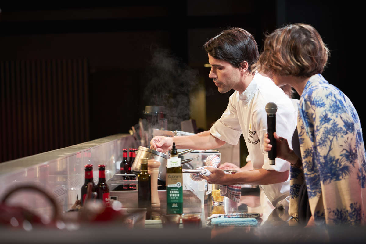 Ante un auditorio repleto, los chefs han hablado de proximidad y de apertura al mundo en sus cocinas, mientras preparaban en directo algunas de las elaboraciones que sirven en sus restaurantes. Albert Adrià ha explicado la importancia de la compra de productos de temporada en todos los restaurantes de su grupo, situados a poquísima distancia entre ellos, pero con técnicas y planteamientos que se ajustan al estilo de cada cocina.