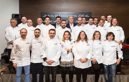 Los chefs que desde ayer representarán a la federación en eventos nacionales e internaciones son: María Marte (Club Allard), Diego Gallegos (Sollo), Toño Perez (Atrio), Javi Estévez (La Tasquería), Iolanda Bustos (La Caléndula), Helio Flores (Los Álamos), Yolanda León y Juanjo Perez (Cocinandos), Begoña Rodrigo (La Salita), Macarena de Castro (El Jardín), Nacho Basurto (Asubio), Emilio Gutiérrez (La Malinche), Gregorio Moreno y Borja Letamendía (Paradores), Félix Guerrero (Pedro Larumbe), Diego Gavira (Coque), Pedro Caravias (Duque), Barbara Buenache (SushiMore) y Manuel Alonso (Casa Manolo).