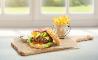 El secreto de la Truffled Burger reside en la elaboración de la carne, mezclada con boletus picados en diferentes calibres y aceite de trufa, alcanzando la integración perfecta de los ingredientes. Para conseguir un sabor más completo, se corona con champiñones Portobello, lascas de queso Grana Padano y cebolla y se acompaña con patatas dipper con queso parmesano espolvoreado y salsa Mayo Truffled.