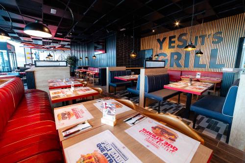 Con un total de 300 metros cuadrados y 50 metros cuadrados de terraza, los clientes de Foster´s Hollywood pueden disfrutar de un espacio especialmente pensado para vivir la auténtica esencia americana. En total, 174 personas pueden degustar los conocidos platos genuinos de la marca y también deleitarse con las continuas novedades que la marca incluye en su carta como, por ejemplo. las nuevas hamburguesas compuestas por ingredientes únicos y diferentes para deleitar a todo tipo de paladares. Las nuevas Pastrami Burguer, la Pepperoni Chicken, la BBQ Smash y la Black Label Burger (con nueva receta) también están disponibles en este nuevo restaurante.