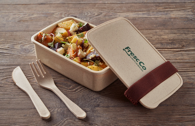 Además, junto con el lanzamiento del nuevo packaging, FrescCo ha lanzado una fiambrera sostenible personalizada con el logo de la marca, y que está realizada con fibras naturales de bambú, por lo que es sostenible, reutilizable y apta para lavavajillas, microondas y congelador.