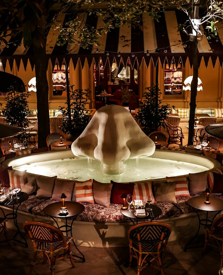 Un espacio artístico y gamberro, teatral y auténtico. Gala es un viaje al pasado surrealista de la Barcelona de inicios del siglo XX en una reinterpretación contemporánea que se inspira en la naturaleza, la forma, el color, y la alegría. El lugar donde disfrutar de una cocina mediterránea de producto tradicional para comer o cenar, pero también donde tomar el té en el patio alrededor de la fuente o tomar copas en el club hasta bien entrada la noche. Vayas a la hora que vayas, siempre va a haber algo que te haga querer quedarte.