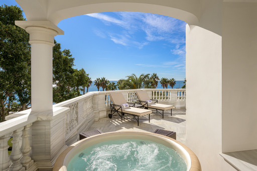 El reconocimiento que ha recibido Gran Hotel Miramar aumenta el valor de su Suite Royal, habiendo sido elegido ganador de la categoría entre otros 12 hoteles de España. Para esta elección, se ha tenido en cuenta su tamaño de unos 80 metros cuadrados, su cuidada y elegante decoración; sus excelentes vistas al mar Mediterráneo y sus servicios ofertados, como el exclusivo jacuzzi situado en la terraza privada.