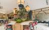 Entre los materiales utilizados encontramos maceteros vidriados de inspiración andaluza y lámparas de gran proporción rindiendo homenaje a los faroles sevillanos, que se convierten junto a la vegetación en los elementos más representativos del local. Además de esto, las texturas arenadas, diferentes tipos de maderas, papeles pintados y cerámicas vidriadas, se fusionan con otros elementos de interiorismo en tonos teja, azules y verdes.