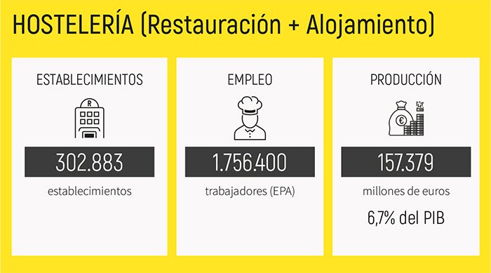 En España, el sector de hostelería se caracteriza por ser uno de los sectores económicos con mayor potencial y capacidad de generación de empleo. La media de empleo alcanzado en hostelería respecto al conjunto de la población ocupada española llega al 8,3% en 2023 y es la rama predominante en el sector turístico, concentrando más de un 64% de los ocupados en ese sector.