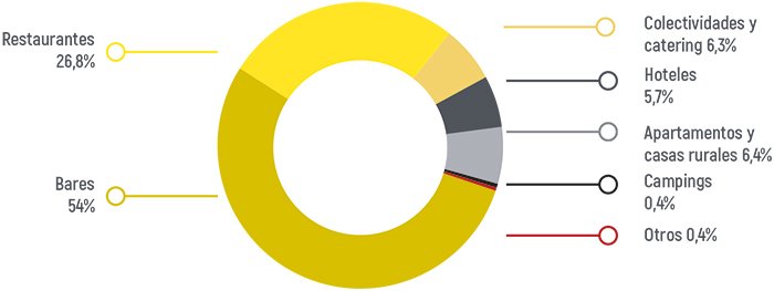 Dentro del total de la hostelería, los establecimientos de restauración son los que más representación tienen, con el 87% del total, contabilizándose en 2023 cerca de 263.600 locales. La mayor parte son microempresas, el 96% tiene menos de 10 asalariados. La producción del subsector de restauración fue de 111.942 millones de euros.