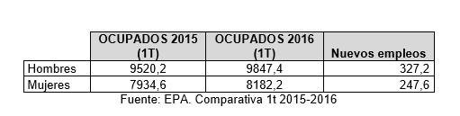 Por último, las mujeres también están escalando posiciones, con 247.600 empleos más que en 2015, alcanzando la cifra de 8.182.200 ocupadas, si bien el grueso de los nuevos empleos ha sido para los hombres, que han acaparado el 57% del total.