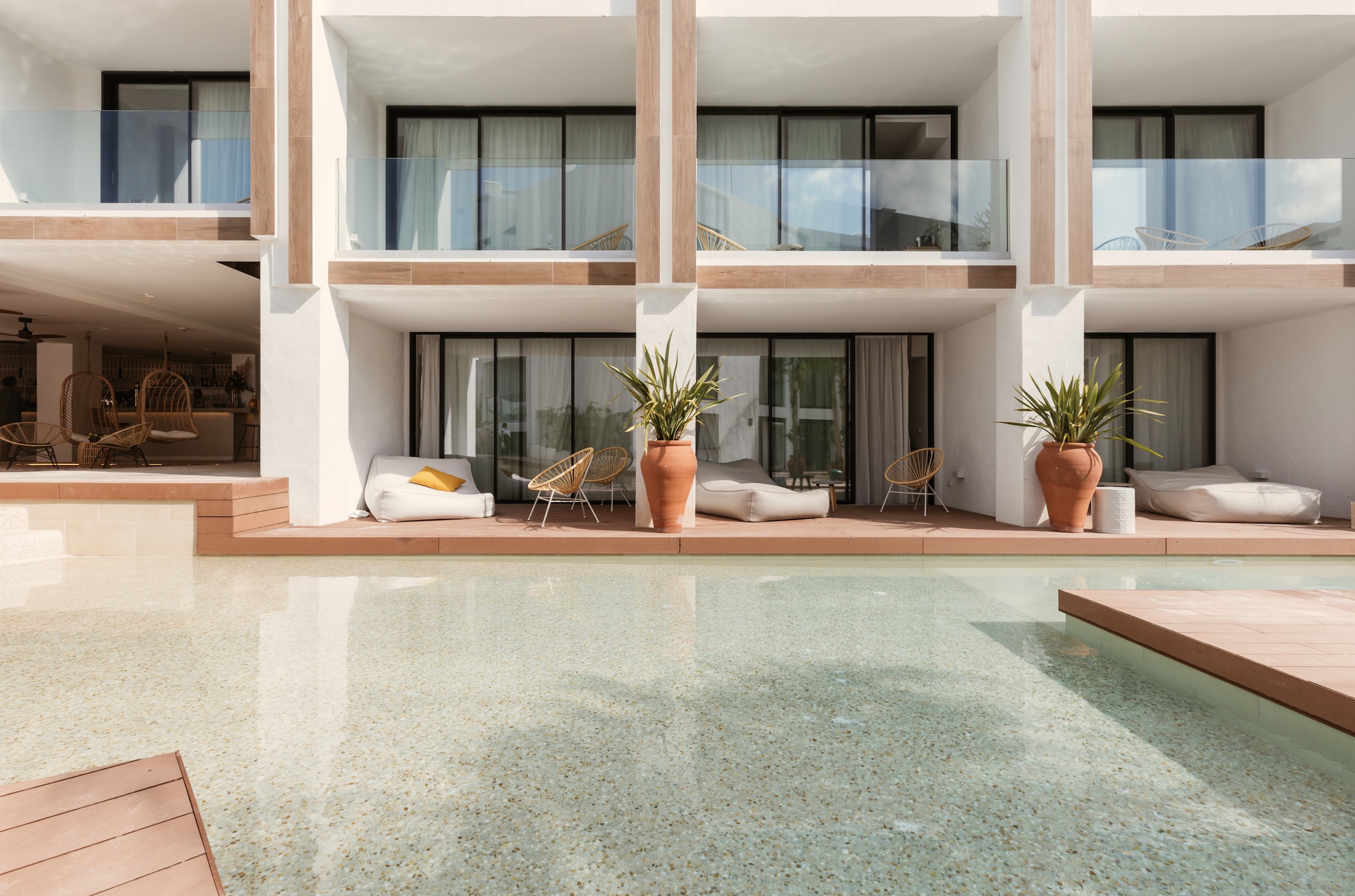 Todas las estancias son amplias y luminosas, con paredes revocadas y una celosía de arcilla hecha en horno de barro que destaca la belleza de uno de los recursos más tradicionales de la arquitectura mediterránea. Nativo Hotel Ibiza ofrece también varias habitaciones Swim up, con acceso directo a la piscina principal, y las Terrace Suites, con vistas al mar y bañera de hidromasaje.