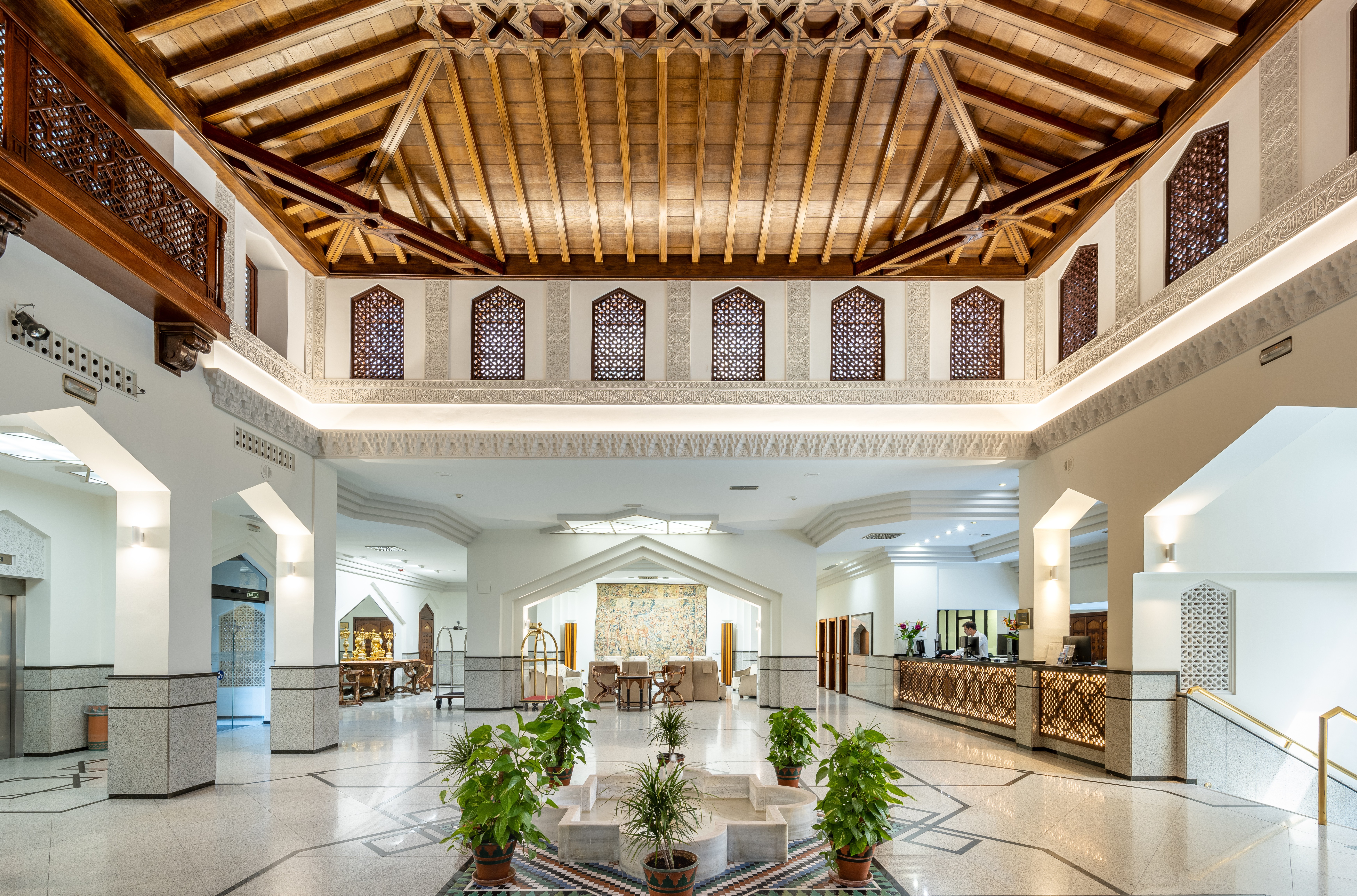 El Hotel Saray se distingue por su arquitectura de inspiración andalusí, presente desde su concepción original, que rinde homenaje a la riqueza histórica y cultural de Granada. Sus jardines, elementos ornamentales y detalles decorativos evocan la tradición nazarí, integrando estos rasgos con un diseño contemporáneo que aporta personalidad propia al establecimiento. Esta identidad singular ha contribuido a convertirlo en un alojamiento reconocido y valorado tanto por visitantes nacionales como internacionales, manteniéndose de forma constante entre las opciones mejor posicionadas de la ciudad.